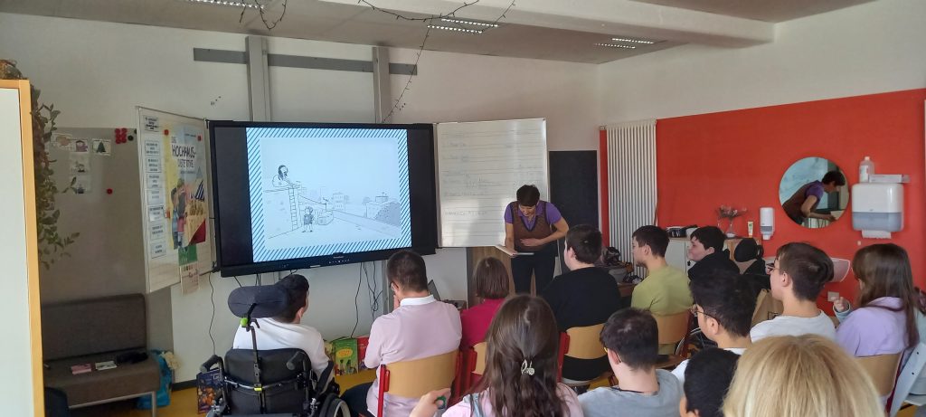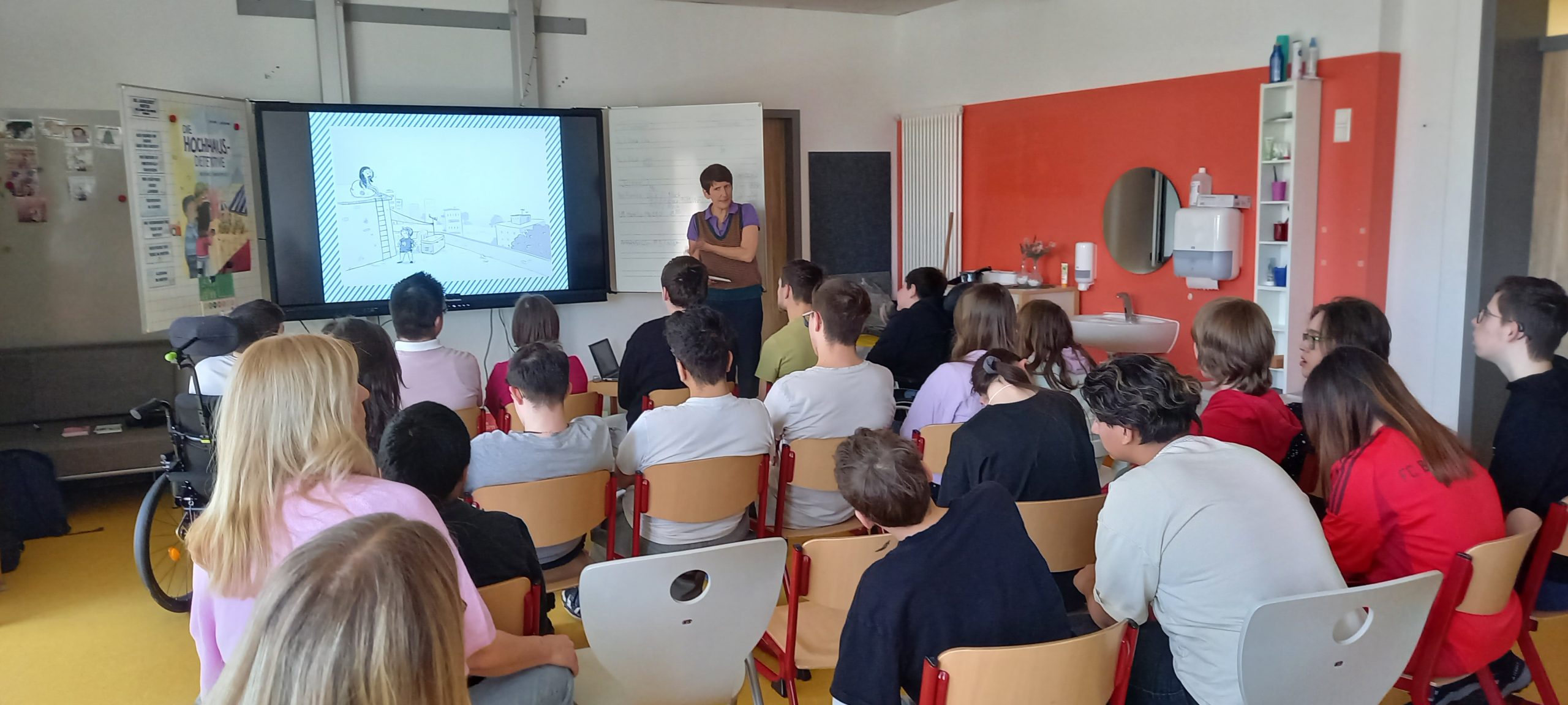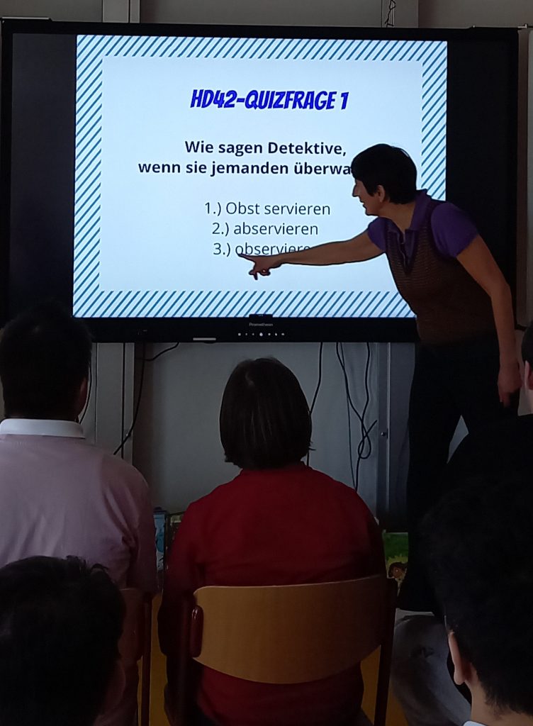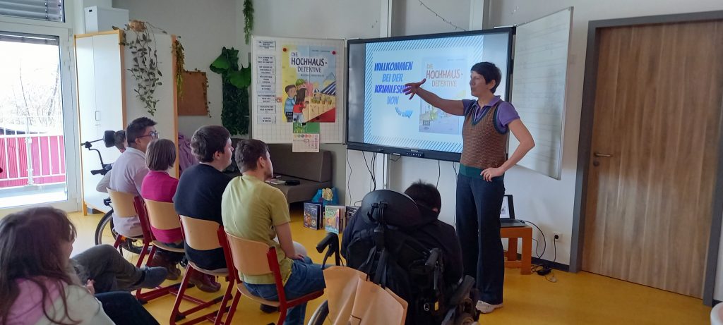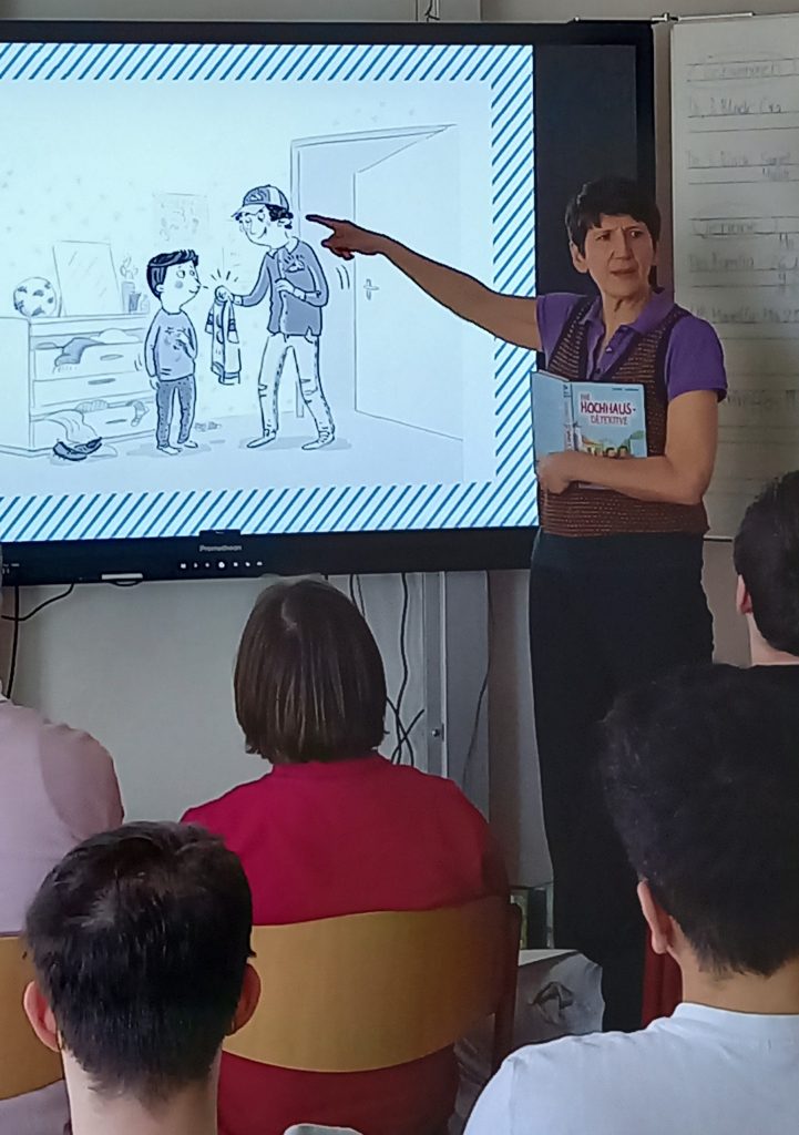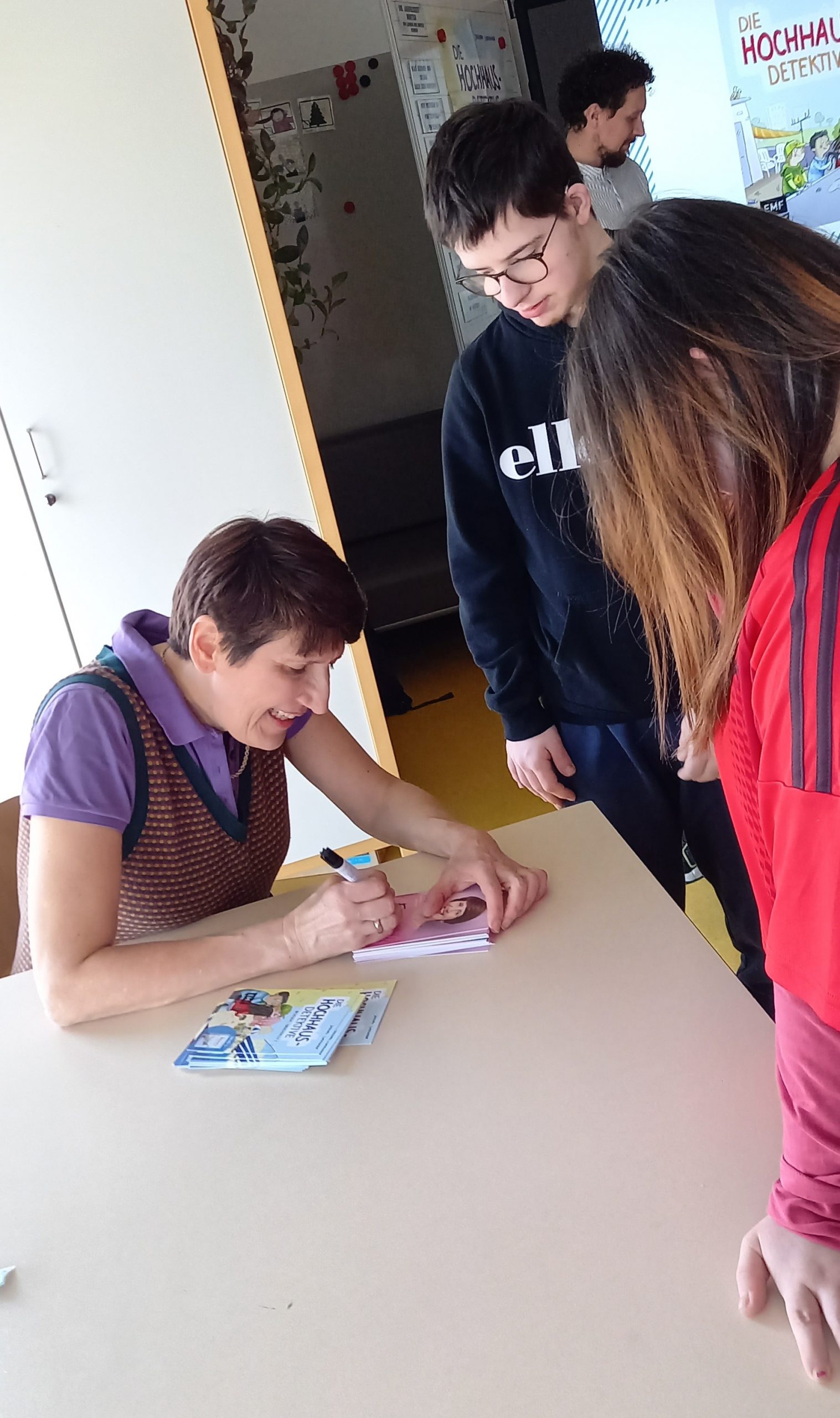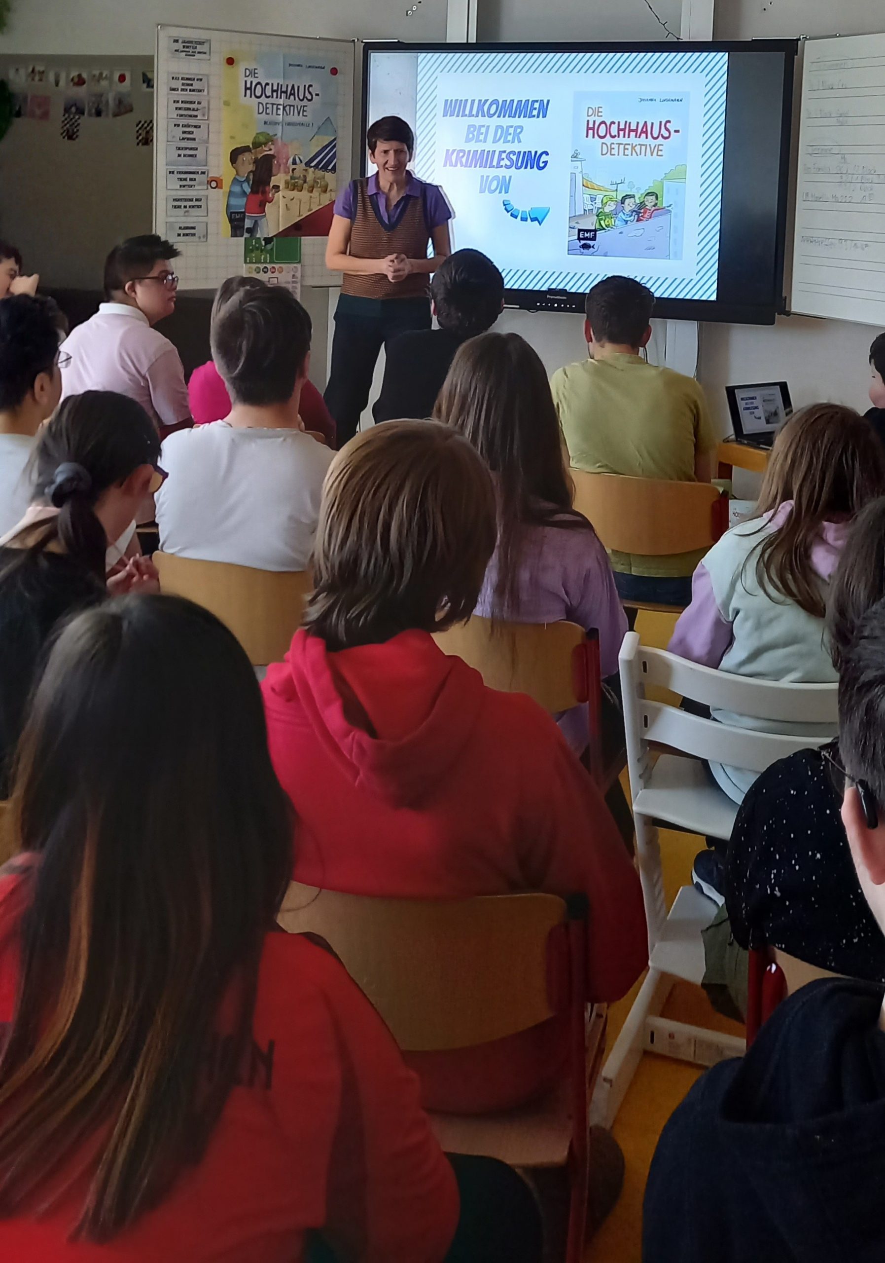 Frau Lindemann las einen Auszug aus einem ihrer Bücher mit dem Titel „Die Hochhausdetektive“ vor. Hierbei bezog sie die Schüler mit in die Geschichte ein, welche ihrerseits begeistert bei der Sache waren.
