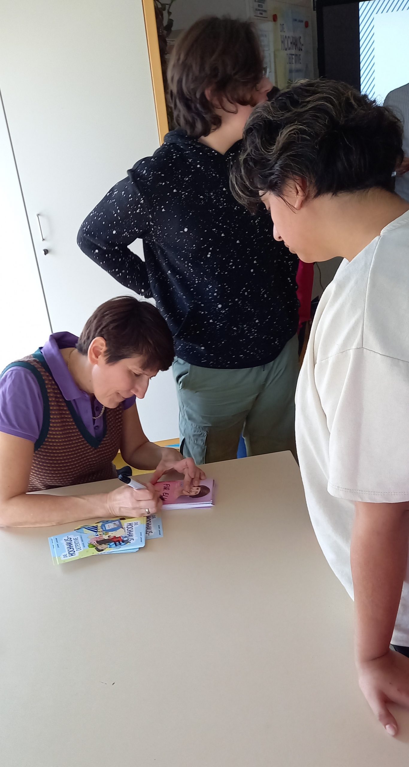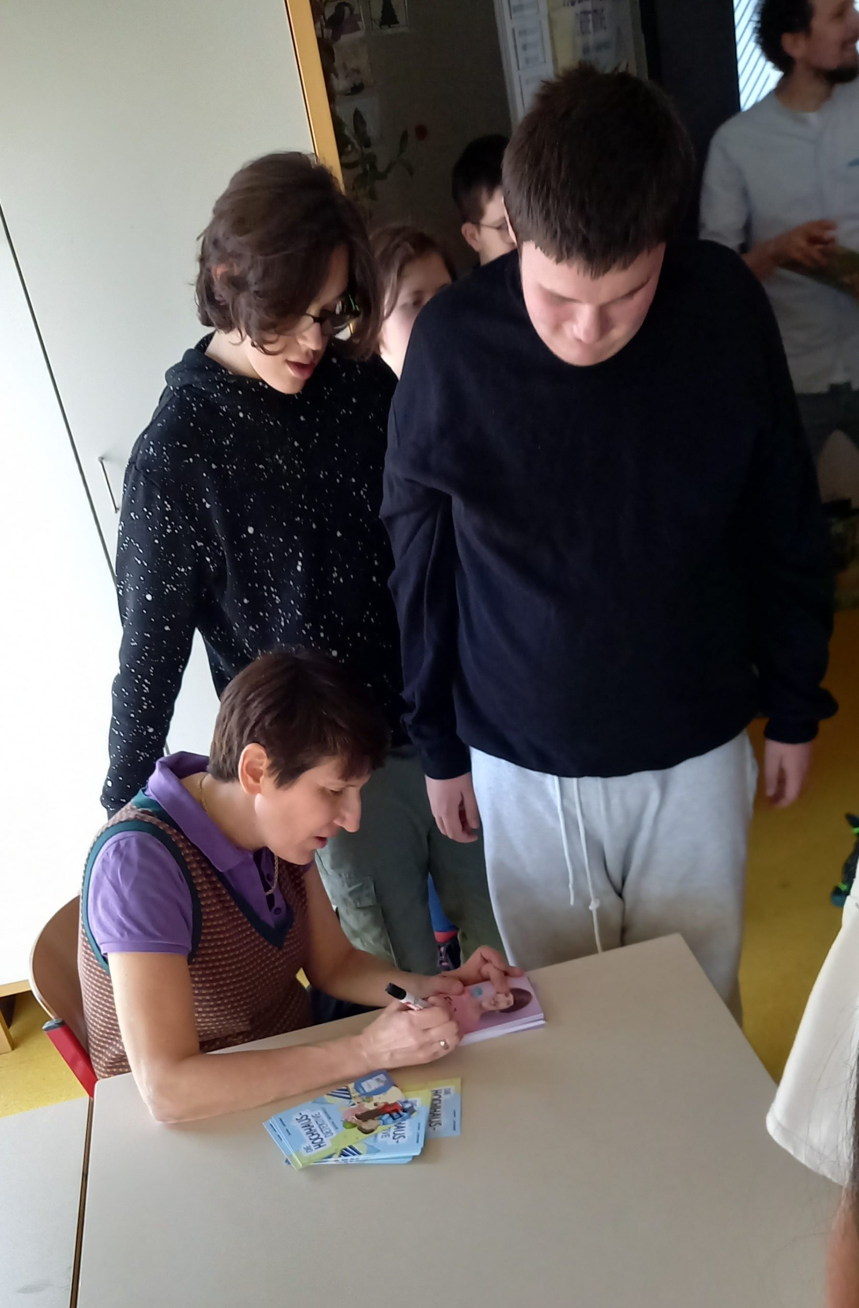 Eine echte Schriftstellerin, Frau Johanna Lindemann, kam zu Besuch und hielt eine Lesung ab, zu der neben den beiden Klassen auch noch andere Lesekurse eingeladen wurden.