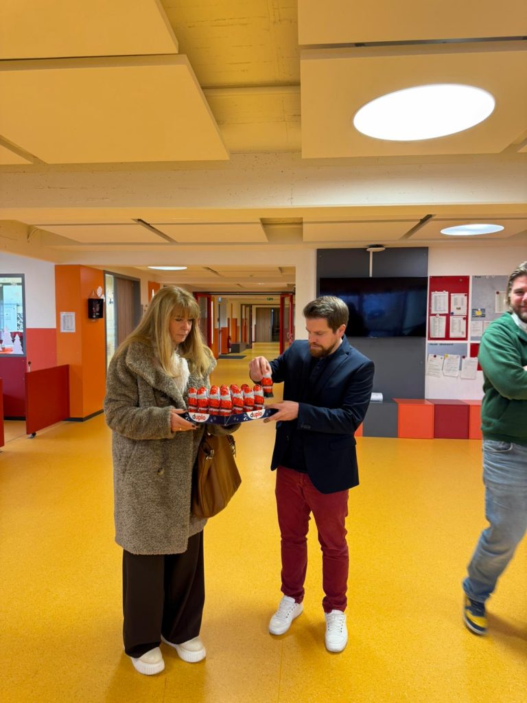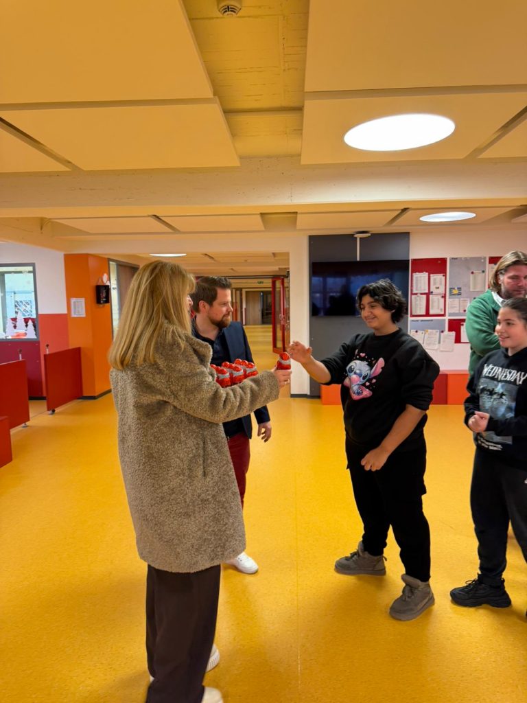 Die Übergabe erfolgte diese Woche durch Andrea Bernhardt (Prokuristin) und Marcel Richter (Vorsitzender des Betriebsrats) an den Förderverein der Schule, vertreten durch den Vorsitzenden Tim Horvat. Auch Schulleiter Herr Reich sowie die Schulklassen von Frau Bernhardt-Würtz und Herrn Horvat waren stellvertretend für alle Schülerinnen und Schüler vor Ort.